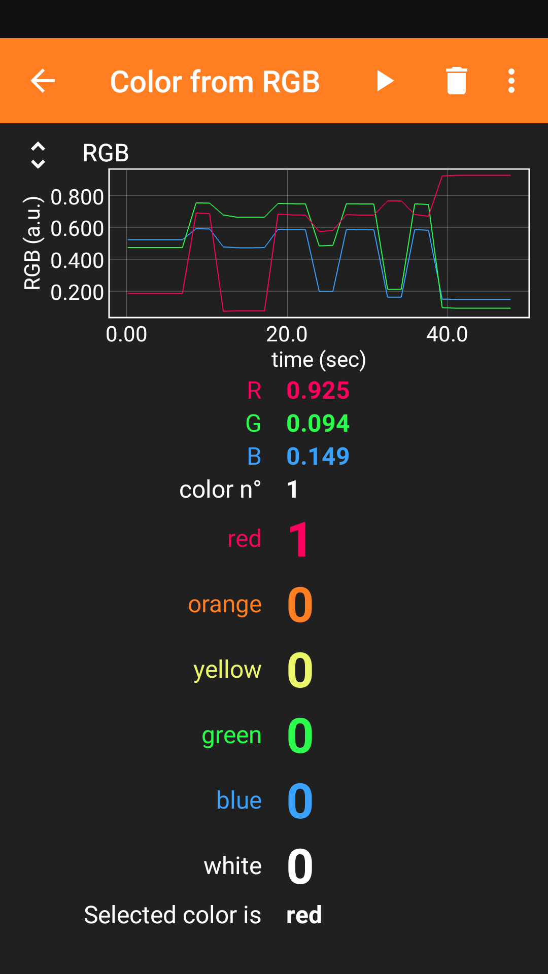 RE: Color by Arduino Nano 33 Sense BLE - Sebastian Staacks - 09-15-2021 There is a function that might help you: The "value" element has a "map" function that allows mapping numeric ranges to predefined texts. We use this for example for the GPS status or the note value in the Audio spectrum. You can see the documentation here: https://phyphox.org/wiki/index.php?title=Phyphox_file_format#View-Element:_value Just define a list of <map>-tags with the matching number as "max" in ascending order. Unfortunately, you cannot set the matching color for the view element and would need to leave it neutral. Example (not tested): <value label="Color"> <input>colorbuffer</input> <map max="0">red</map> <map max="1">orange</map> <map max="2">yellow</map> ... </value> Phyphox goes through the list and uses the first matching entry. You can leave out min and max for the last entry to use it as fallback or if it also has a criterium and no entry matches, phyphox should fall back to the numeric value. RE: Color by Arduino Nano 33 Sense BLE - solid - 11-14-2021 (11-13-2021, 12:29 PM)renkay Wrote: good idea, how to fix it in project I add Sebastian's correction some time ago, but I kept the colors ![]() RE: Color by Arduino Nano 33 Sense BLE - Jens Noriʇzsɔɥ - 11-14-2021 I like