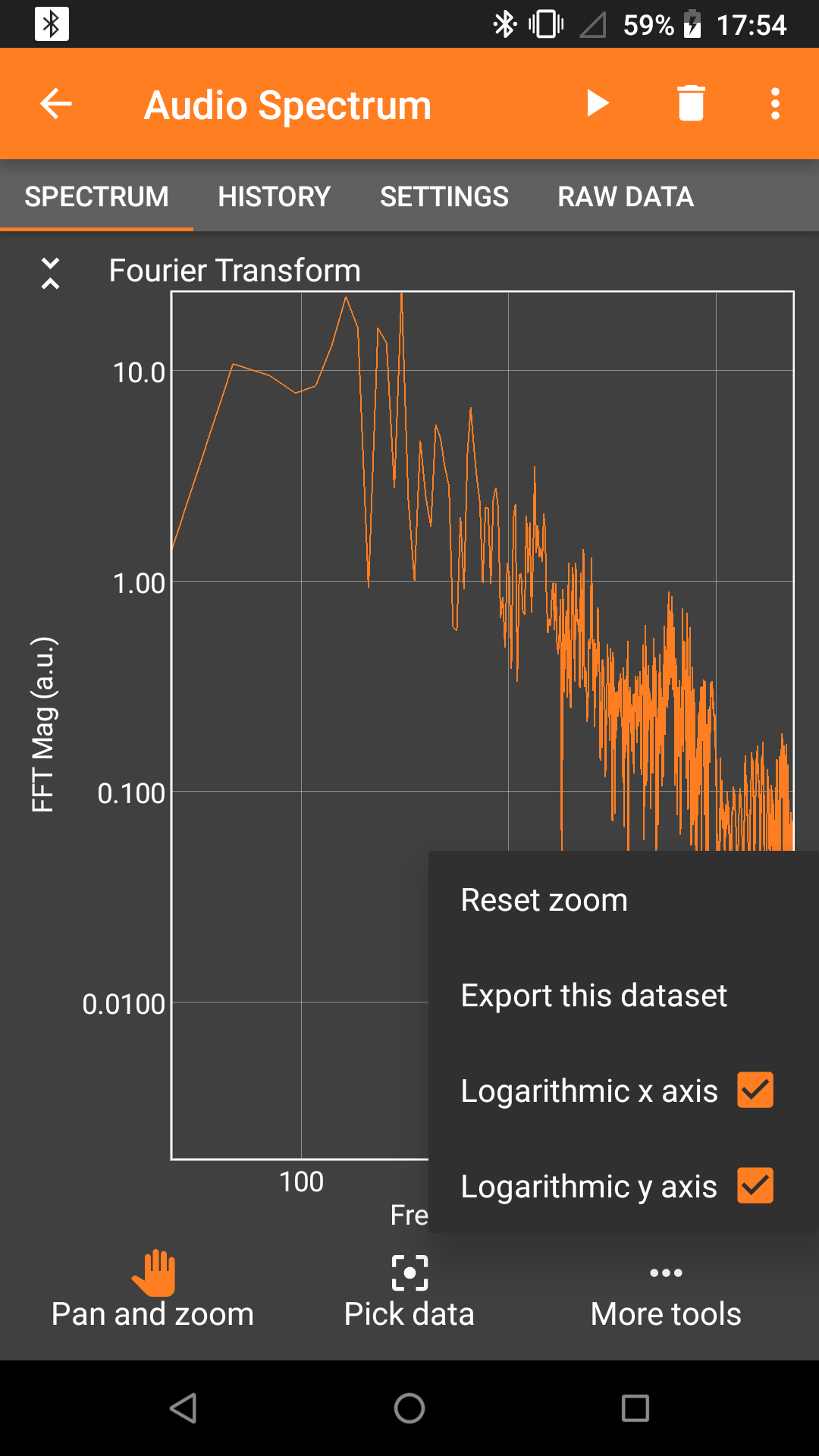 It would be great to be able to draw an audio spectrum with a non-logarithmic axis. That would allow students to directly see the regularity in the higher harmonics of a guitar string or a vibrating elastic. Then they could visually compare with a pan flute. (This would probably require a way to set the max frequency on the graph)