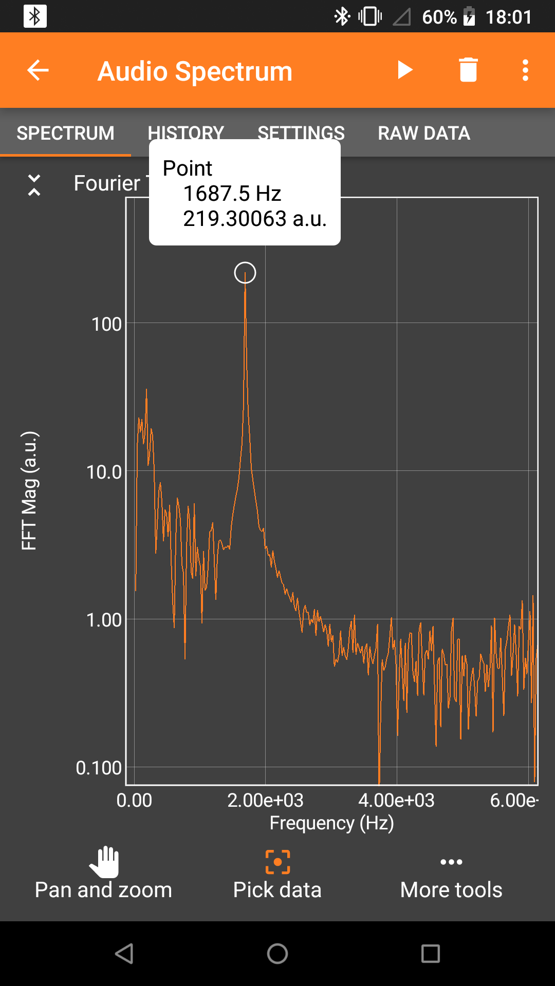 For quick experiments it could be nice to  be able to read peak frequencies directly from the phone. One idea is to click on the graph to add a point.. Another idea is to select a range to find a local maximum within the range. Alternatively you could just add a slider below the graph.and use the slider to choose a frequency that you want to mark on the graph.